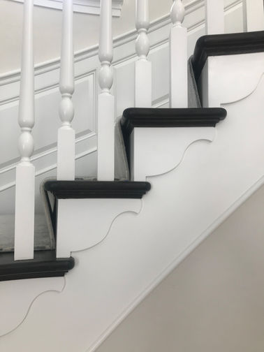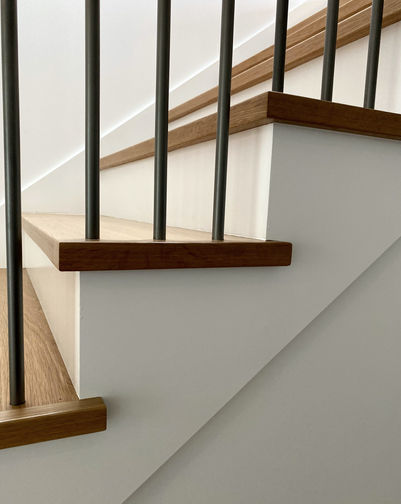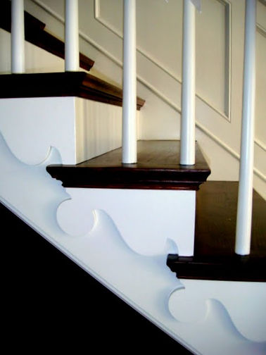 Treads and risers come in various shapes and styles as well. There is the more modern slab tread and open riser that gives your stair a more open look, or waterfall treads and risers that can be used in a box stair to give it a more modern flair. Then there is the traditional bullnose tread as well as other various custom tread profiles and cove trims that can be used in a variety of stairs from traditional to transitional and can give your stair that little something extra to bring it all together and give it the distinctive style that makes it yours.